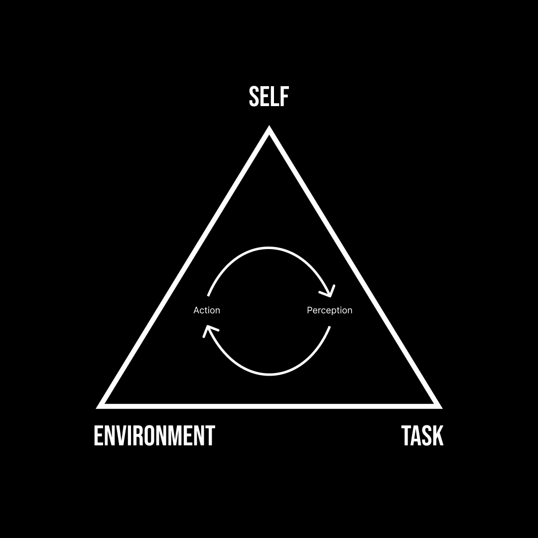 I mentioned earlier the term “ecological dynamics,” and without getting too far into its nuance and detail, I’d like to explain what it is and how it relates to my client. Ecological Dynamics is a framework that helps us understand how individuals interact with their environment and with the tasks they engage in, emphasizing that these relationships are complex and continuously changing. Through this lens, we’ve learned that experiential approaches to both cognitive and motor learning are more effective than traditional memorization and prescription-based approaches.